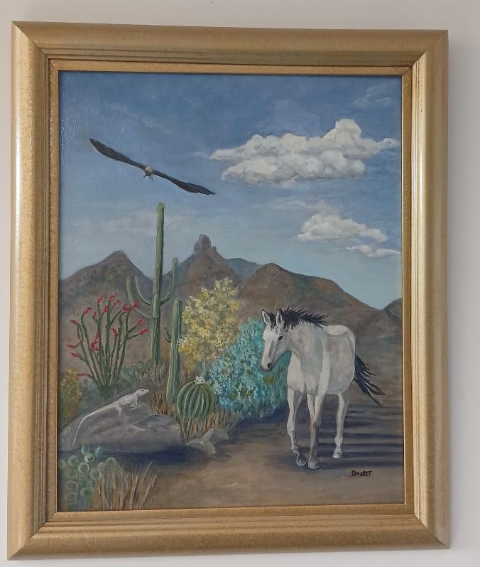 My love for animals and impressionist landscapes has always captivated me. Since enrolling in an ongoing art class at Journey West Art School in Tucson, my desire to paint has blossomed. The world looks amazing after learning color values in relation to the tonal plans.